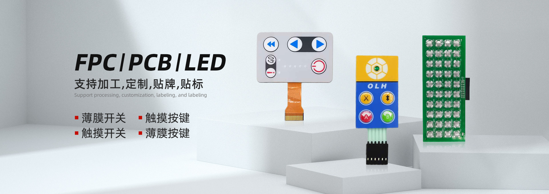 主要生產FPC/PCB/EL/LED薄膜開關,薄膜按鍵,薄膜鍵盤,薄膜電路等系列產品